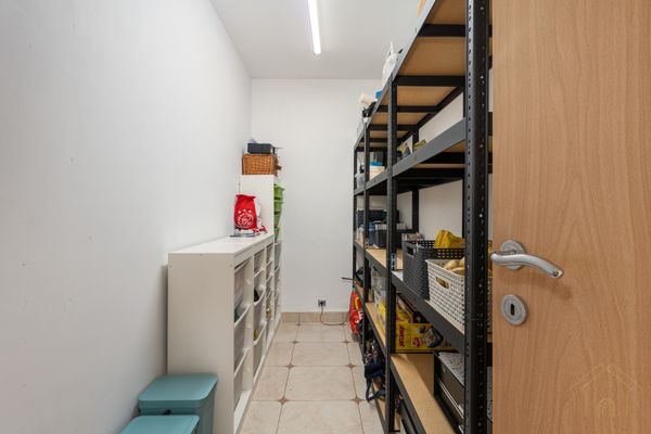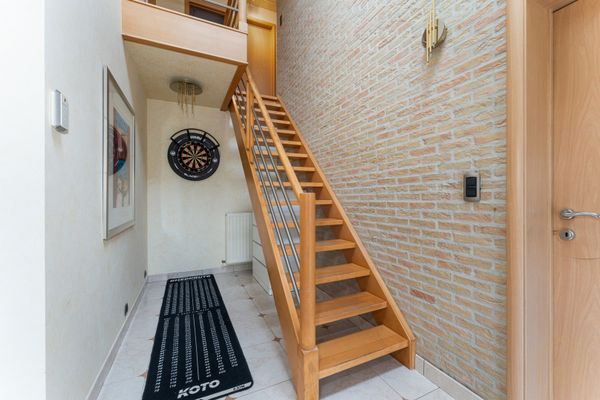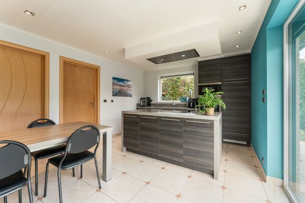 Via de inkomhal, met een handig gastentoilet, kom je in de lichtrijke woonkamer waar grote ramen zorgen voor een aangenaam open gevoel. Aansluitend bevindt zich de volledig uitgeruste keuken met ruime berging. Van hieruit heb je toegang tot zowel de tuin als de garage.